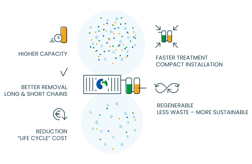 Given the elevated COD, IEX was selected over granular activated carbon (GAC) for better PFAS selectivity and cost efficiency, while organics were left for downstream WWTP treatment.